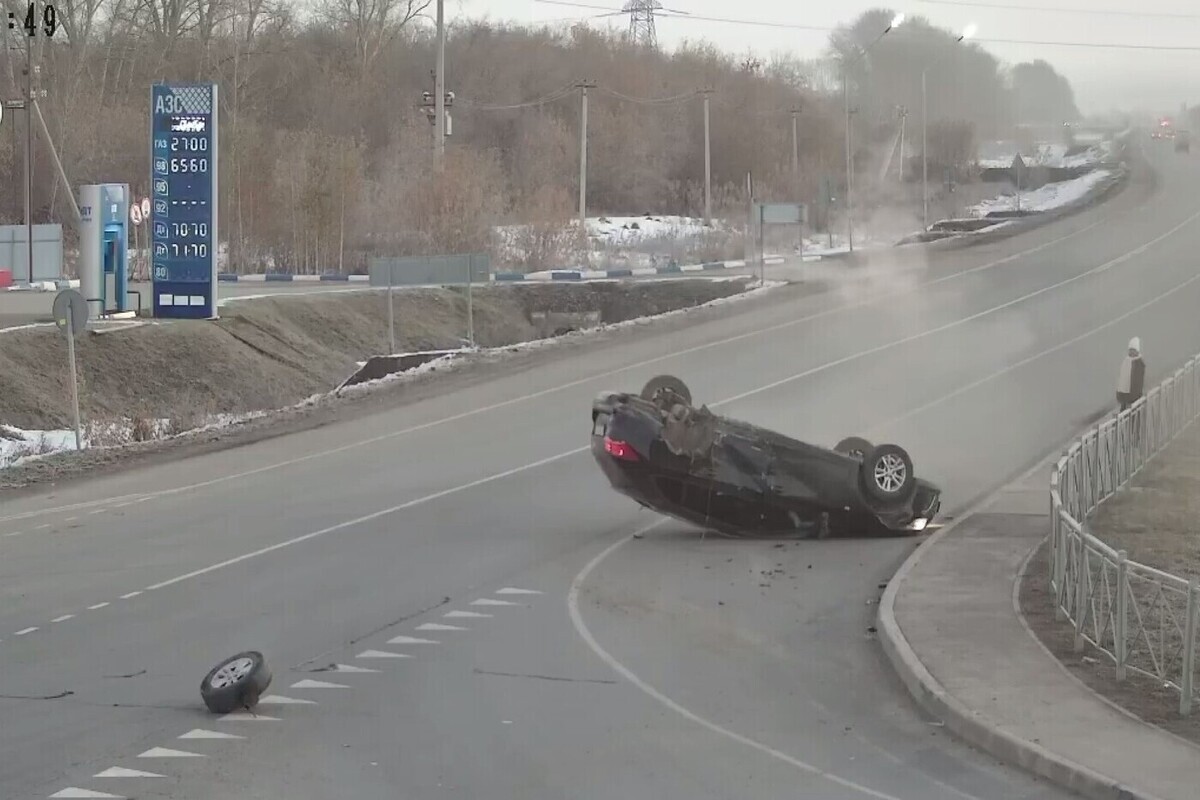 ДТП попало на детекторы транспорта интеллектуальной транспортной системы. Об этом рассказали в ГКУ НСО ЦДОД. Сообщается, что автомобиль перевернулся на крышу рядом с тротуаром, где шёл пешеход. Женщина успела отбежать в сторону.