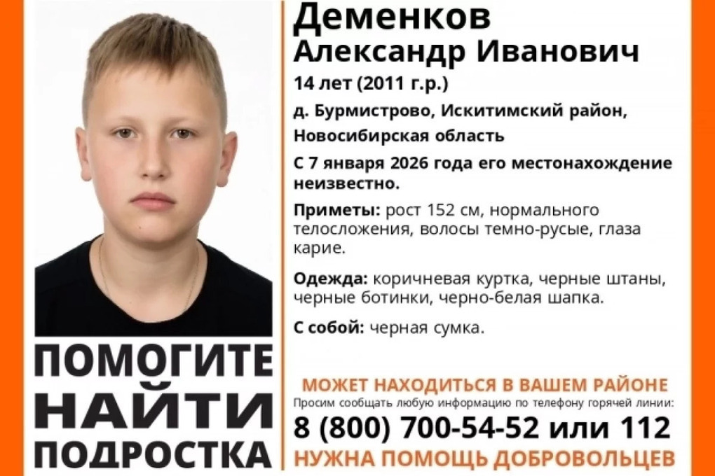 В Искитимском районе Новосибирской области ведутся поиски пропавшего подростка. Как сообщили в региональном поисково-спасательном отряде «ЛизаАлерт», 14-летний Александр Д. исчез 7 января в деревне Бурмистрово.