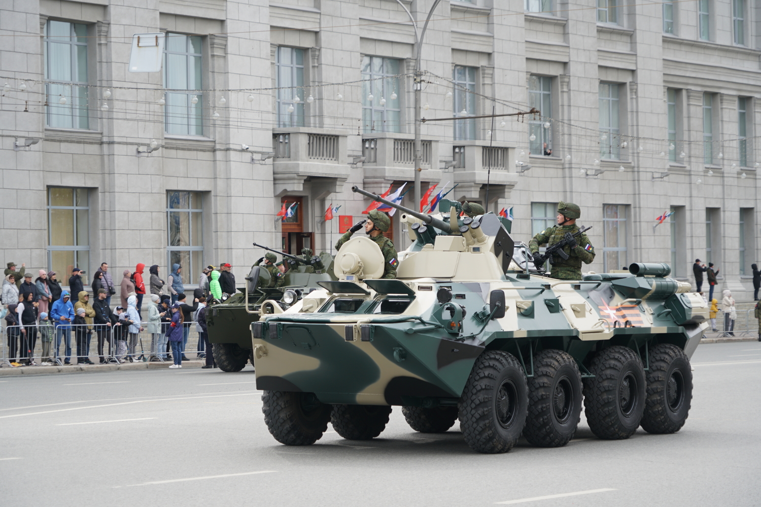 Сегодня рано утром площадь Ленина, часть Красного проспекта и соседние улицы были перекрыты для подготовки к репетиции Парада Победы. Несмотря на ограничения для автотранспорта, пешеходам был открыт доступ к тротуарам, и тысячи горожан смогли наблюдать за движением военной техники и колонн военнослужащих в сторону главной площади города.