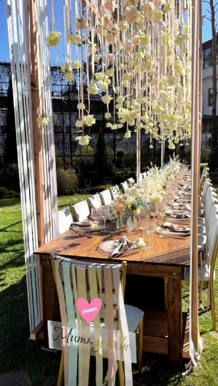 Елена Перминова собрала именитых друзей на вечеринке, устроенной в честь будущего ребенка. Праздник проходил во дворе особняка в Подмосковье. Для гостей были приготовлены большой стол с различными закусками и фотозона.