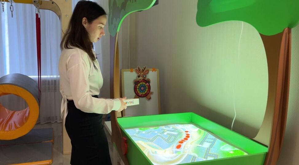 В помещении сделали ремонт, закупили мебель, оснастили его специальным интерактивным оборудованием, которое используется для работы психолога и логопеда-дефектолога.