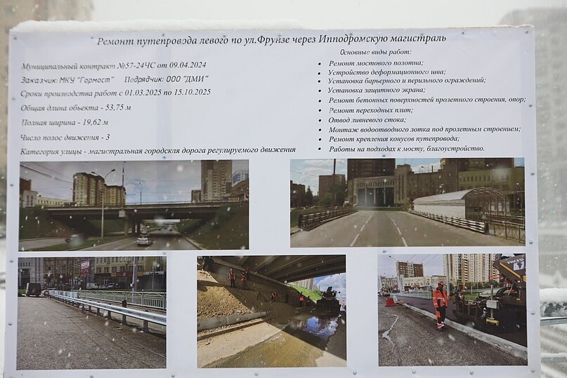 На данный момент подрядной организации осталось нанести разметку на проезжей части и завершить ремонт деформационных швов. К работам приступят, как только установится благоприятная погода.