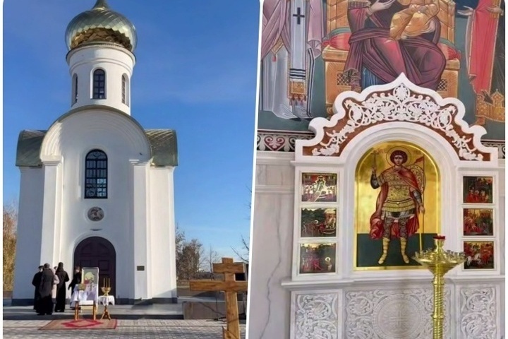 Мемориальное сооружение освящено во имя святого великомученика Георгия Победоносца, который считается покровителем воинов и заступником тружеников сельского хозяйства. Чин освящения часовни совершил митрополит Новосибирский и Бердский Никодим. Об этом рассказал Андрей Травников в своих соцсетях.