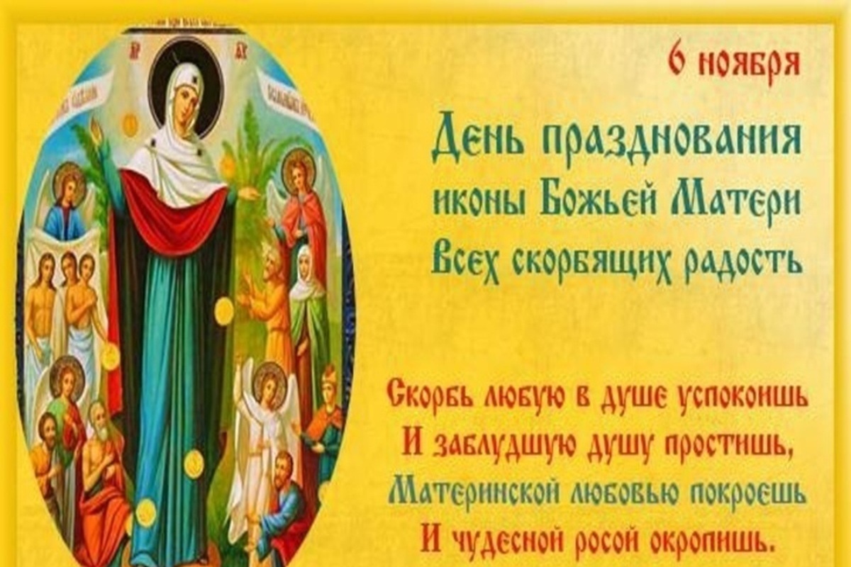 6 ноября православные христиане отмечают день почитания иконы Божией Матери «Всех скорбящих Радость».