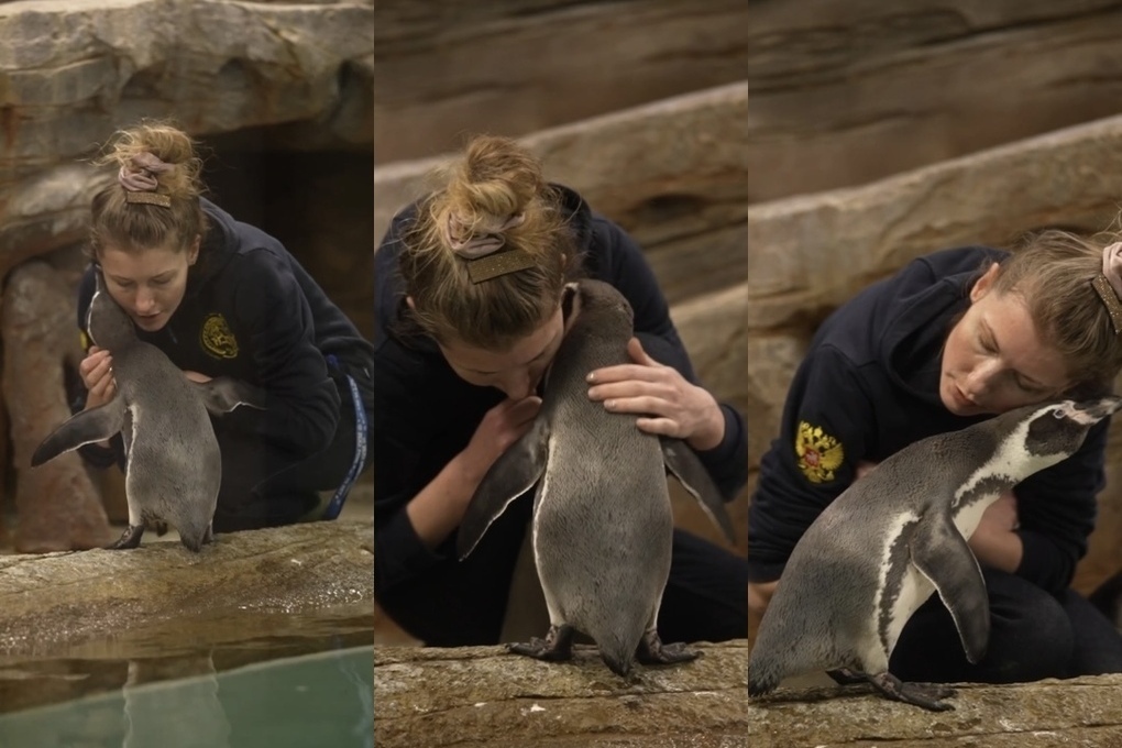 Трогательные кадры доверия пингвинов к сотруднице появилось из новосибирского зоопарка