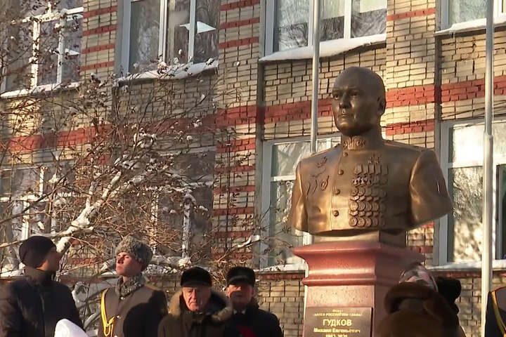 Памятный бюст дважды Герою России Михаилу Гудкову открыли в новосибирской школе