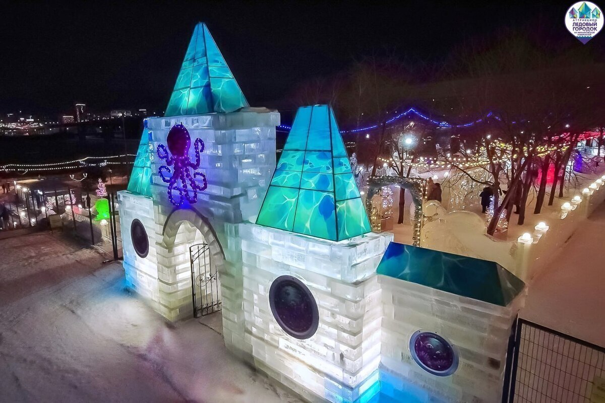 Гостей ждут ледяные скульптуры, горки и тематическая экспозиция «Морская сказка». Ледовый городок открыт для всех посетителей ежедневно с 11:00 до 22:00, касса работает до 21:30.